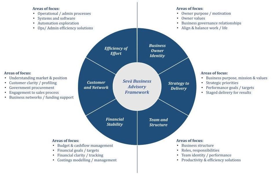 SevÄ business advisory services provide a deeper level of expertise for small to medium businesses looking to take steps forward towards stability and growth. From strategy to structure, financial management to funding support, SevÄ business advisors have the expertise to do the ‘heavy lifting’ when it comes to business and are committed to delivering what is needed to achieve a lasting impact.